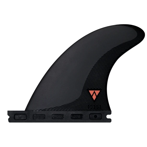 The QD2 3.75 Alpha is a performance fin set made in the USA. Alpha fins are made with an exclusive composite that is carbon and air infused and lighter than Honeycomb. They fall into the Balanced category on the Ride Number scale making them a great all around choice, because they provide enough spring to make it around sections while still maintaining some predictability and hold. Symmetrical foil rear fins on quads give a fluid consistent feeling that is predictable in all conditions, and is enhanced on quads when the rear fins are placed closely together. The first surf fins made from recycled fishing nets!