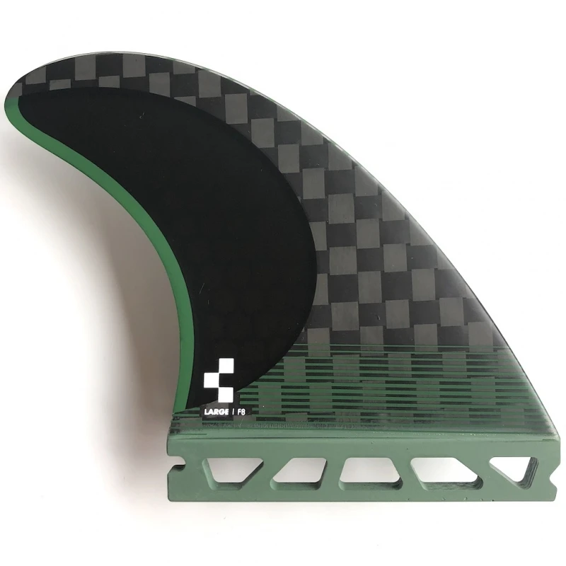 The F8 Blackstix is a large size Speed Generating fin with a Ride Number of 8.7. Featuring a neutral template this is the largest set in the Blackstix lineup. Futures Blackstix fins feature a V2 inside foil that generates and maintains speed throughout turns. The precision carbon and fiberglass matrix construction paired with specialized epoxy resin provides a very lightweight fin with incredible response, making your board feel livelier.